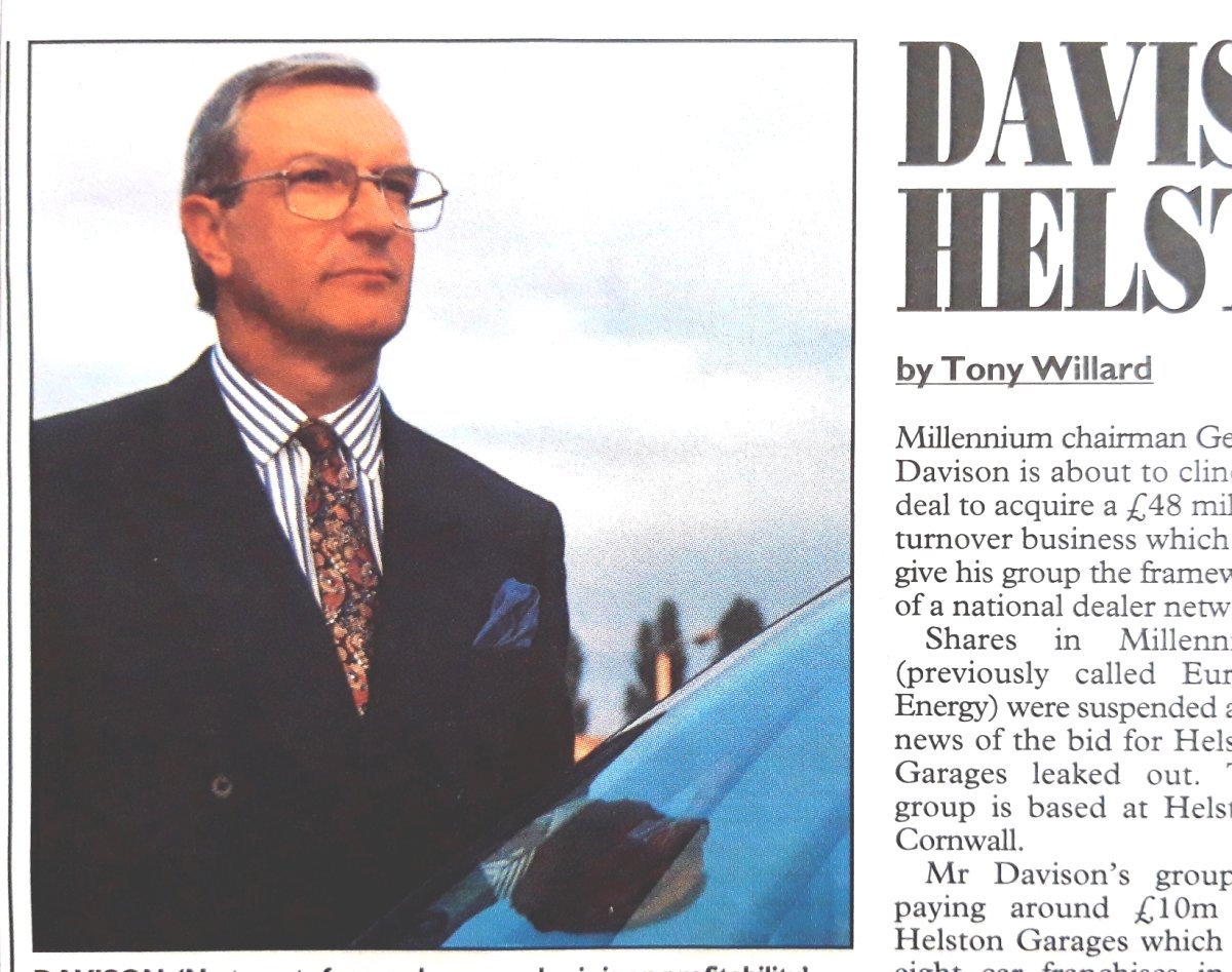 In 1996 Gerald attempted to reverse a large privately owned 11-site motor group spread across the south of England into his listed 2-site ‘Millennium’ company only to have to abort the transaction at the last moment due to a capricious vendor and investor duplicity. He soldiered on for another 2 years but with a diminishing appetite for large scale business.